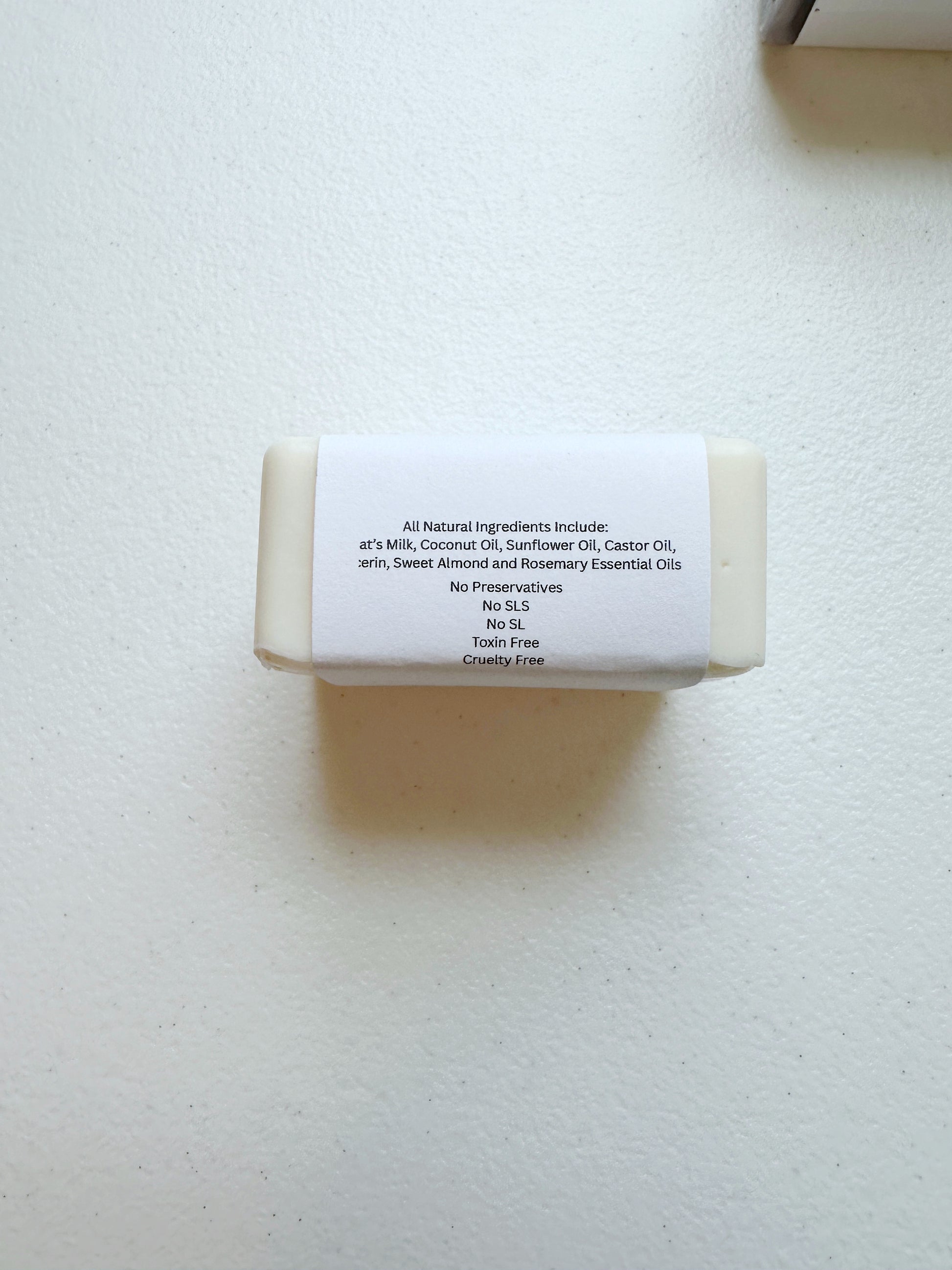 INGREDIENTS: goat’s milk, coconut oil, sunflower oil, castor oil, saponification, organic essential oils included are rosemary and lavender